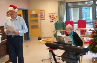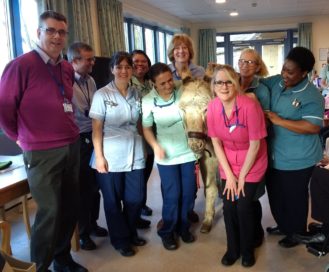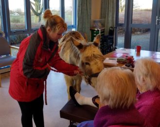 In addition to the scheduled visits, I loved joining the carol singers at Christmas time and helping to plan and take part in seasonal services in the day room. We needed a keyboard which my husband was able to source. When Rosemary, a fellow volunteer was on holiday , we also needed a keyboard player. I managed to get someone from our Church to come along and this led to several of our choir members coming too which boosted the singing at Easter, Harvest Festival and Christmas. One Easter was very memorable when Robin Pfaff arranged for a donkey to visit. The patients and staff loved it …..So did I”.