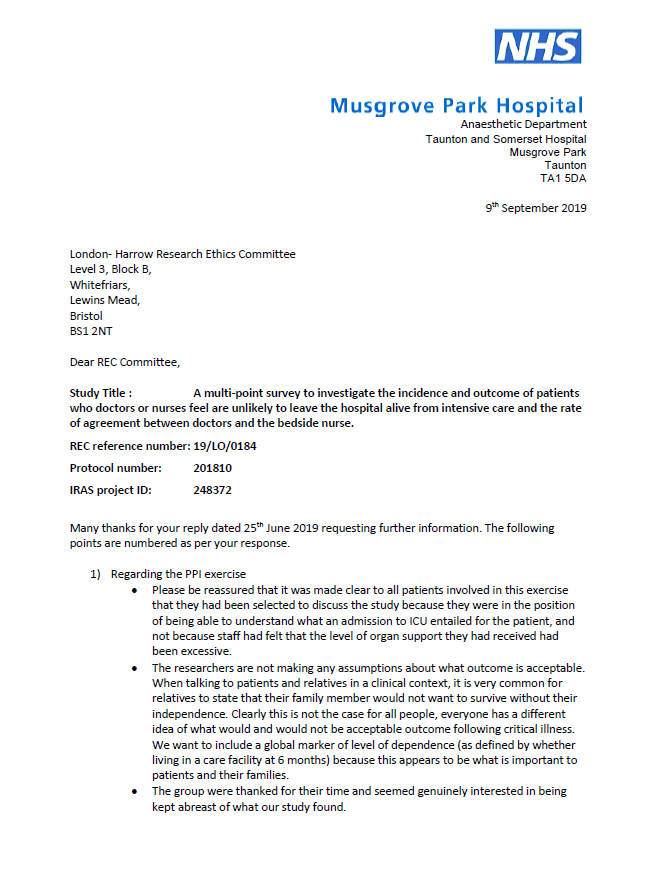 Regional Ethics Committee Approval Letter